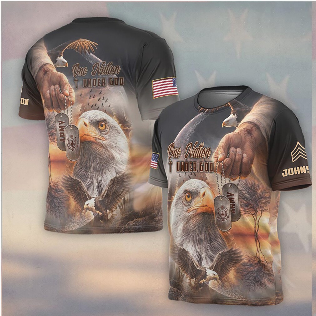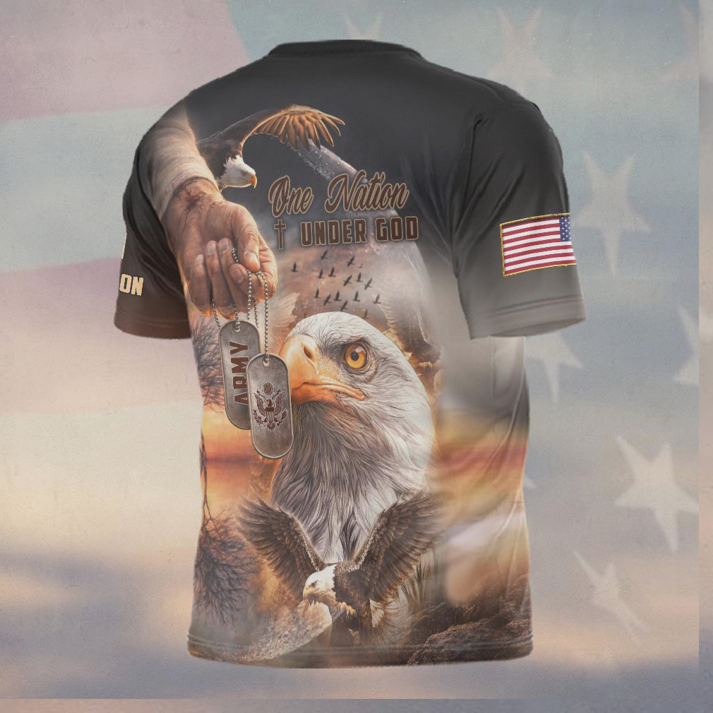 ▶️ About One Nation Under God Eagle Army Dog Tags Military T Shirt – 3D T-Shirt