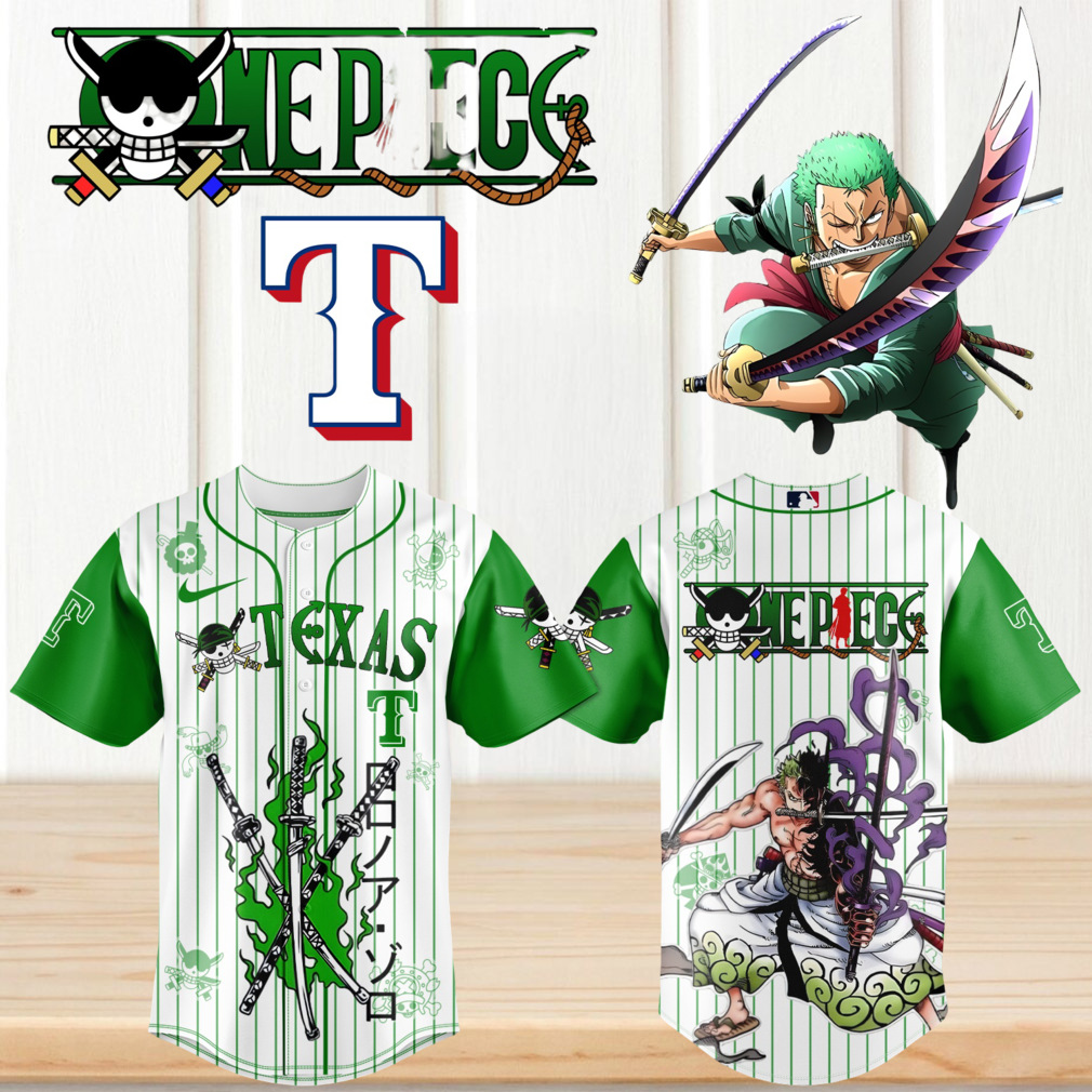 ()One Piece Roronoa Zoro x Texas Rangers Baseball Green Pinstripe Anime T Shirt, V-neck, Sweater Hoodie and Long Sleeve tee