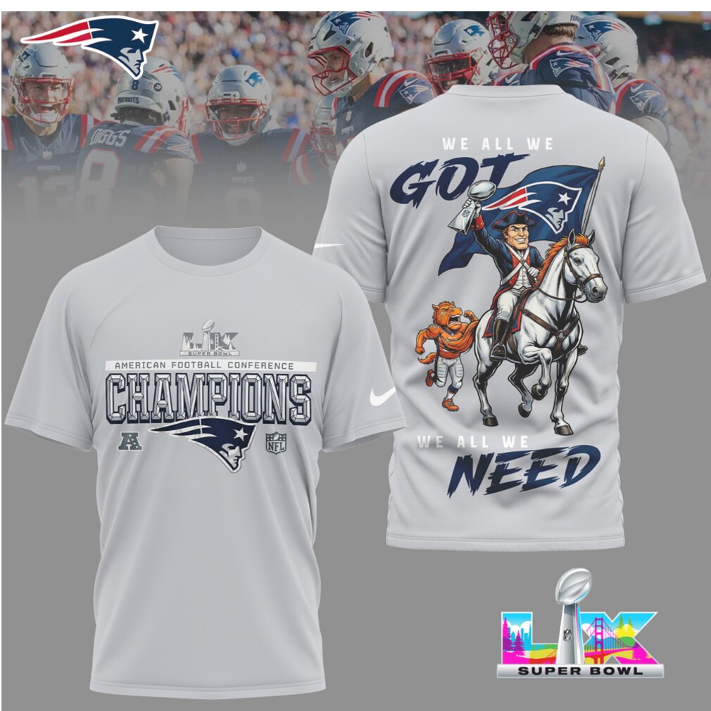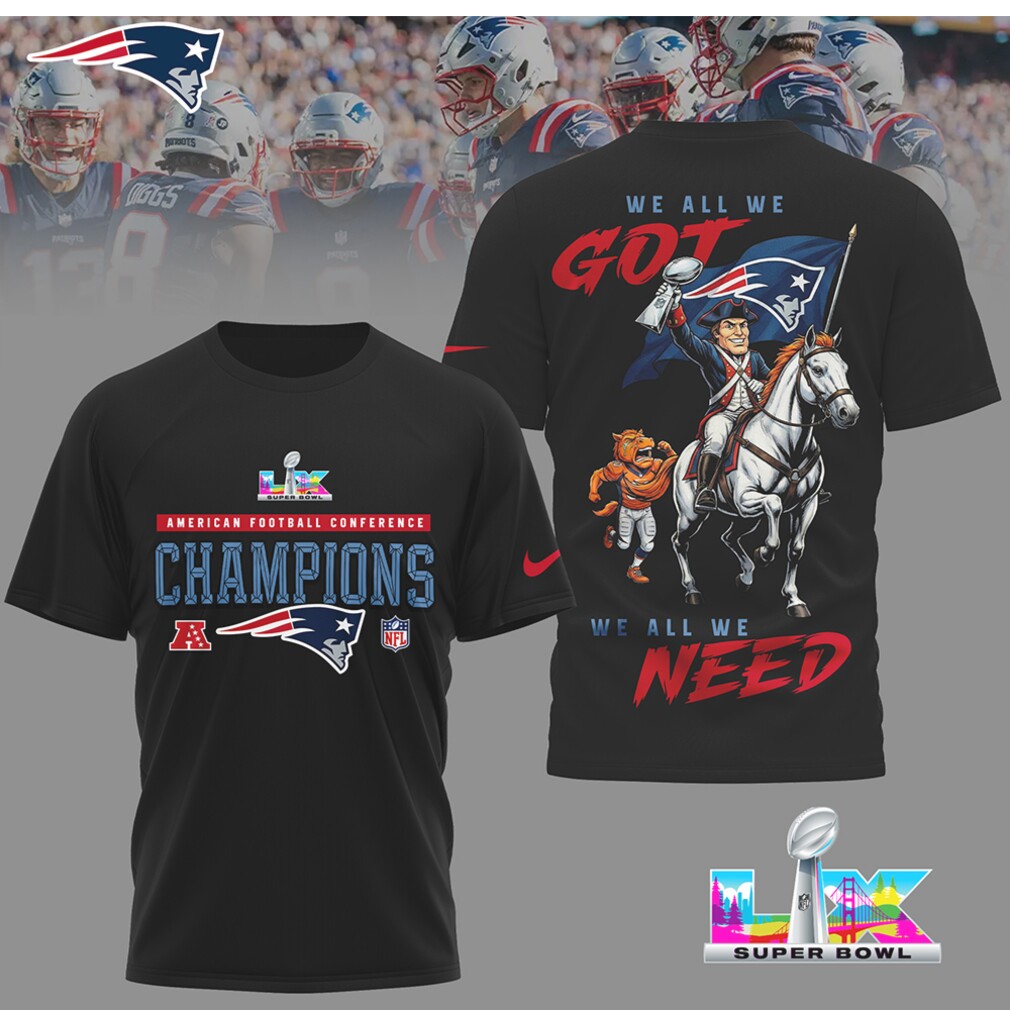 ()▶️ About Patriots Super Bowl LIX Champions Tee We All We Got Fan Merchandise – 3D T-Shirt