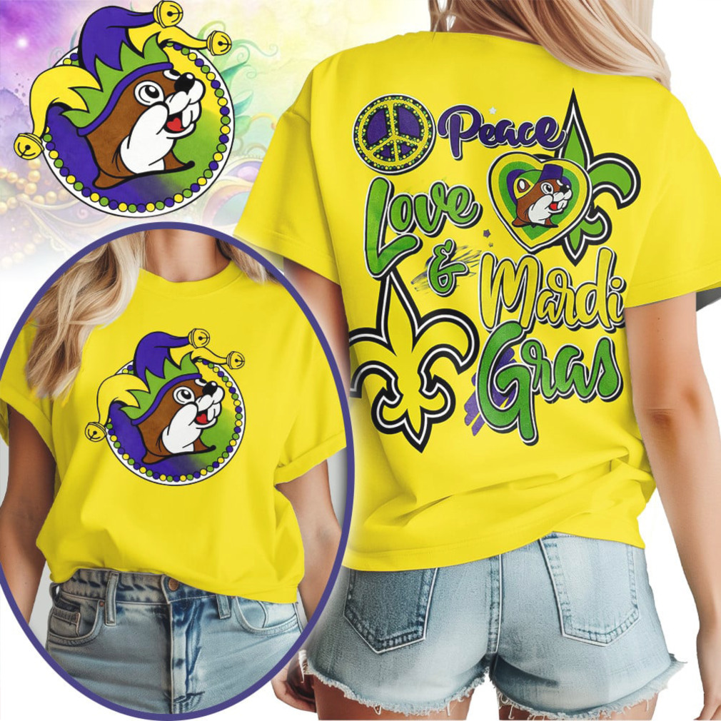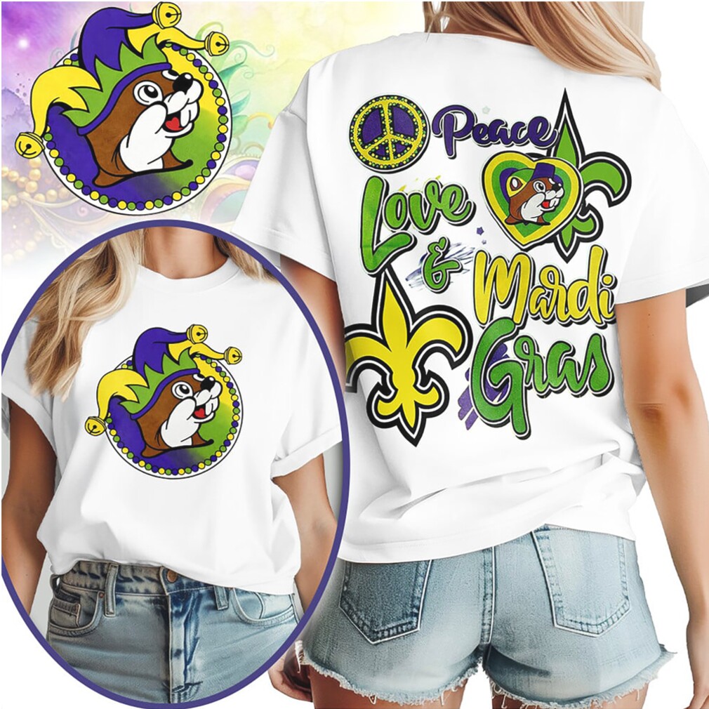 ()▶️ About Peace Love Mardi Gras Beaver Jester Graphic T Shirt Festive New Orleans Party Apparel – 3D T-Shirt