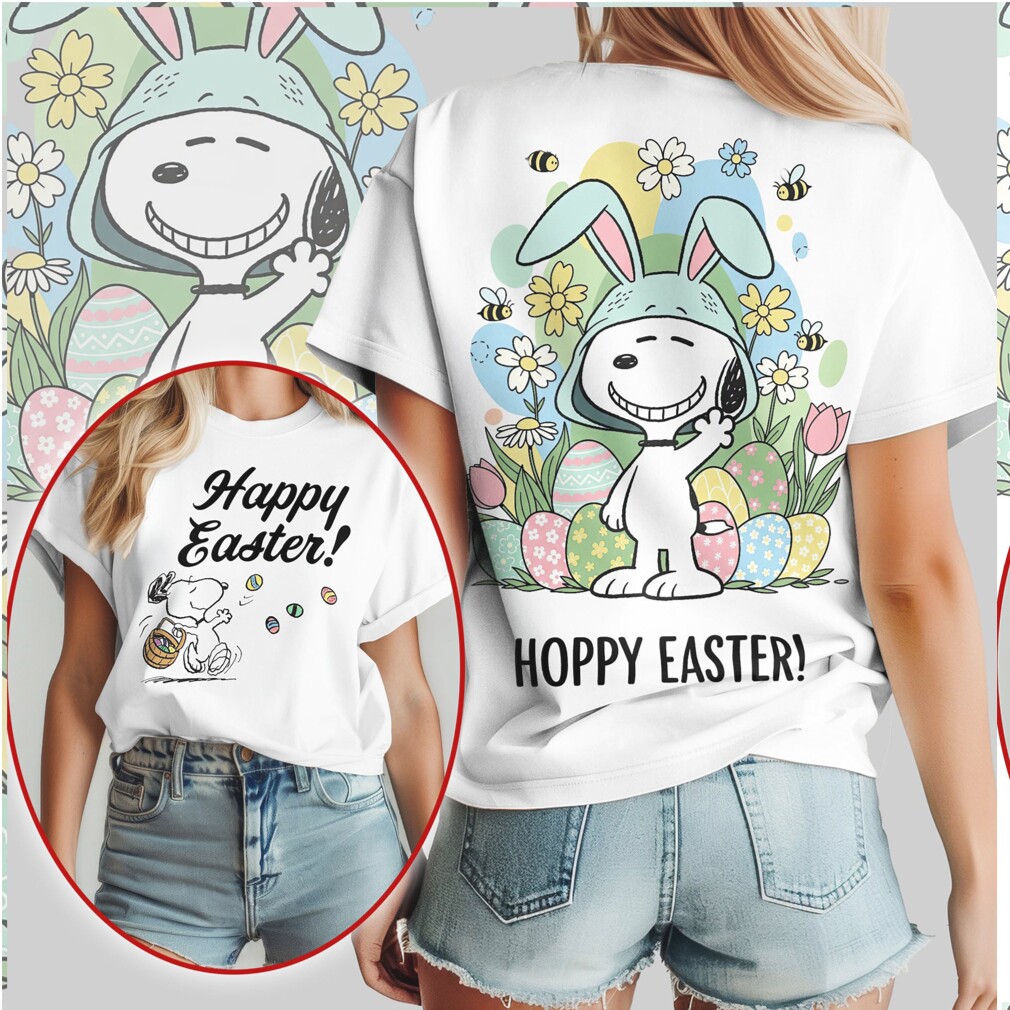 ▶️ About Peanuts Snoopy Hoppy Easter Bunny Suit Easter Egg Hunt T Shirt – 3D T-Shirt