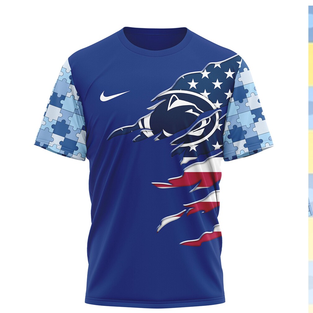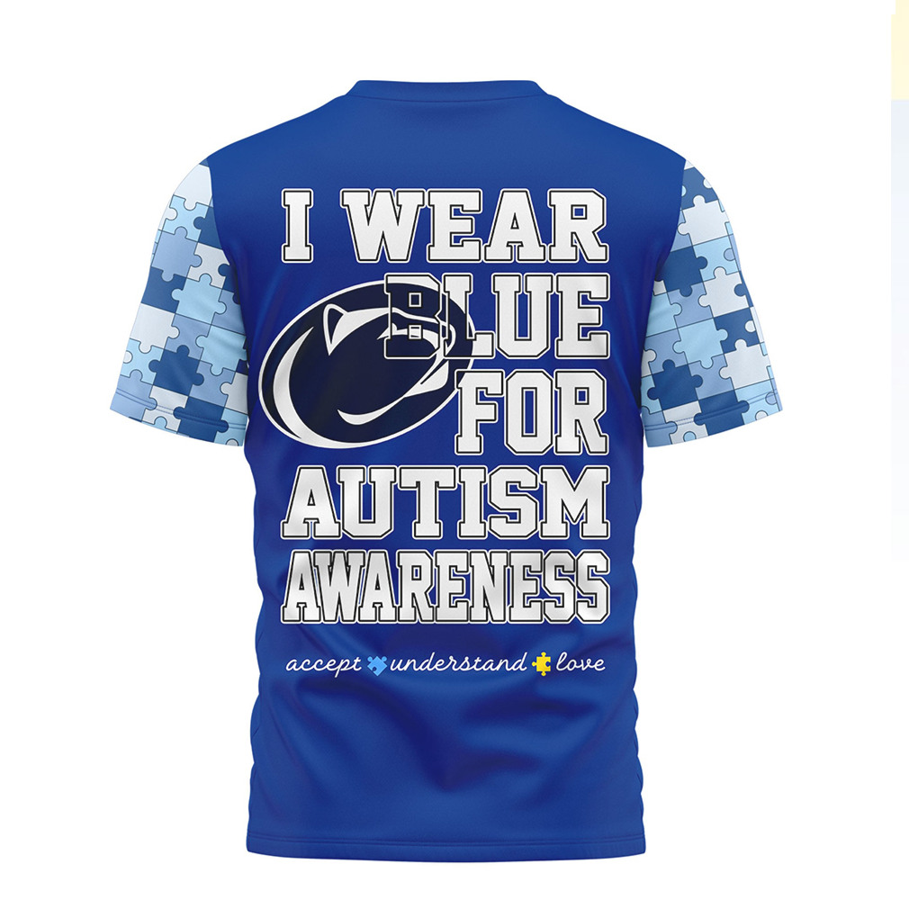 ▶️ About Penn State Nittany Lions I Wear Blue For Autism Awareness T Shirt – 3D T-Shirt