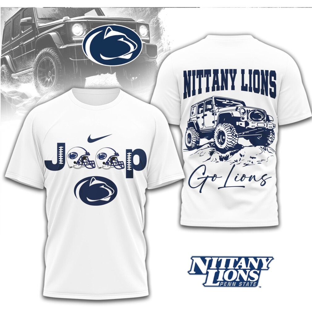 ()▶️ About Penn State Nittany Lions Jeep Vintage White Out Game Day Apparel T Shirt – 3D T-Shirt