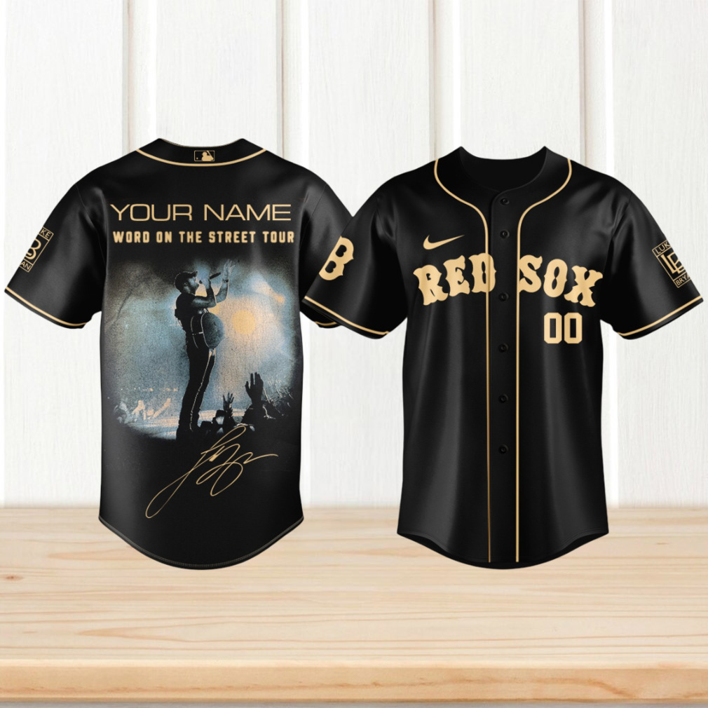 Personalized Luke Bryan Word On The Street Tour Red Sox Black & Gold Jersey