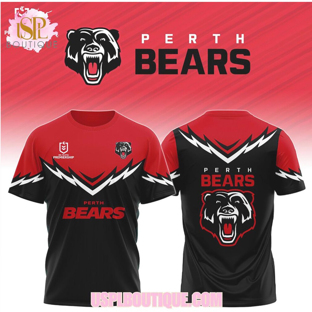 ()▶️ About Perth Bears NRL Rugby League Team Mascot Logo Black Red Performance Sports Apparel – 3D T-Shirt