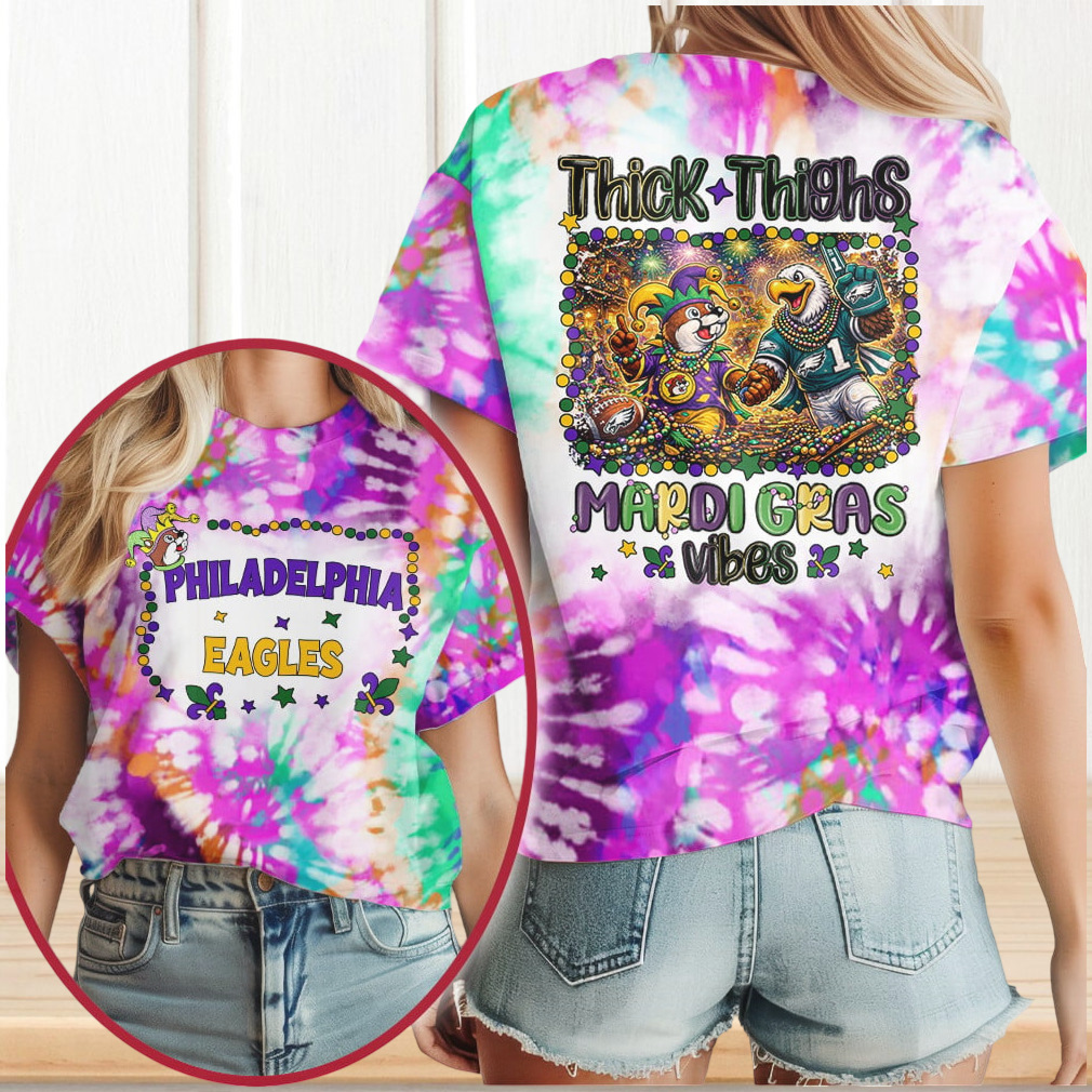 ▶️ About Philadelphia Eagles Mardi Gras Vibes Thick Thighs Mascot NFL T Shirt – 3D T-Shirt
