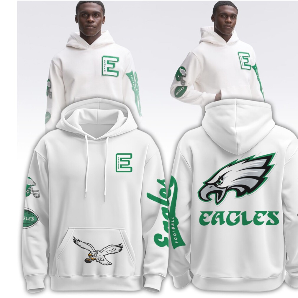 Philadelphia Eagles Retro Vintage Style White Pullover NFL Football Fan Gear Hoodie