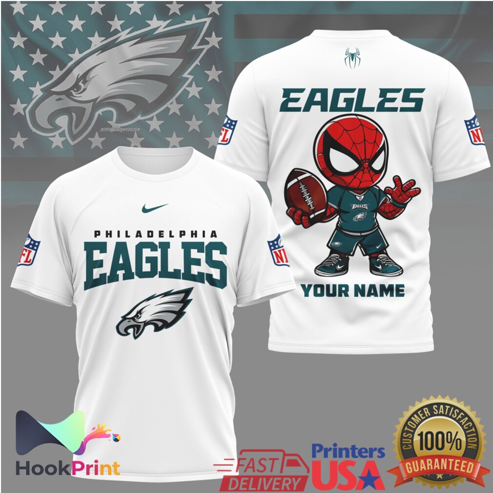 Philadelphia Eagles Spider Man Custom Name Mascot NFL Football T Shirt