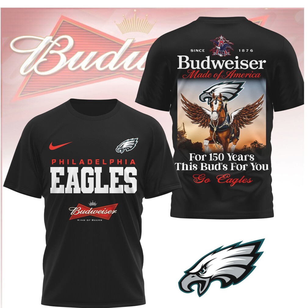 ▶️ About Philadelphia Eagles x Budweiser King of Beers American Football Shirt – 3D T-Shirt