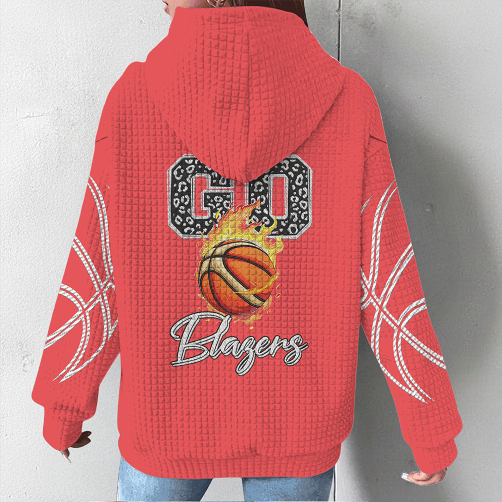 Portland Trail Blazers Red Waffle Knit Classic Graphic Basketball Fan Hoodie