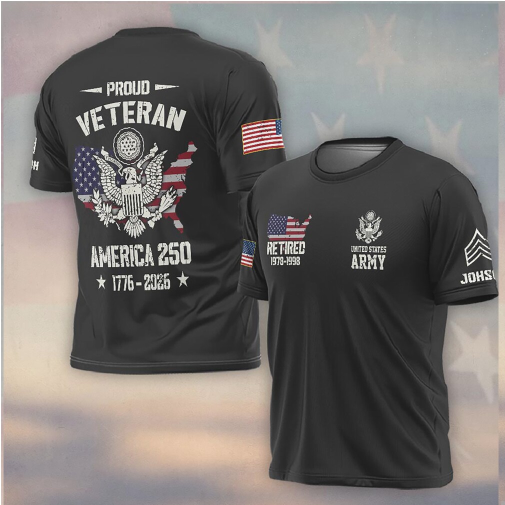 ▶️ About Proud Veteran America 250 Army Retired 1776 2026 US Map Shirt – 3D T-Shirt