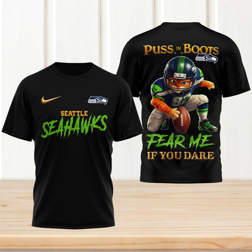 ()▶️ About Puss In Boots Fear Me Seattle Seahawks Shrek Movie Mashup T Shirt – 3D T-Shirt