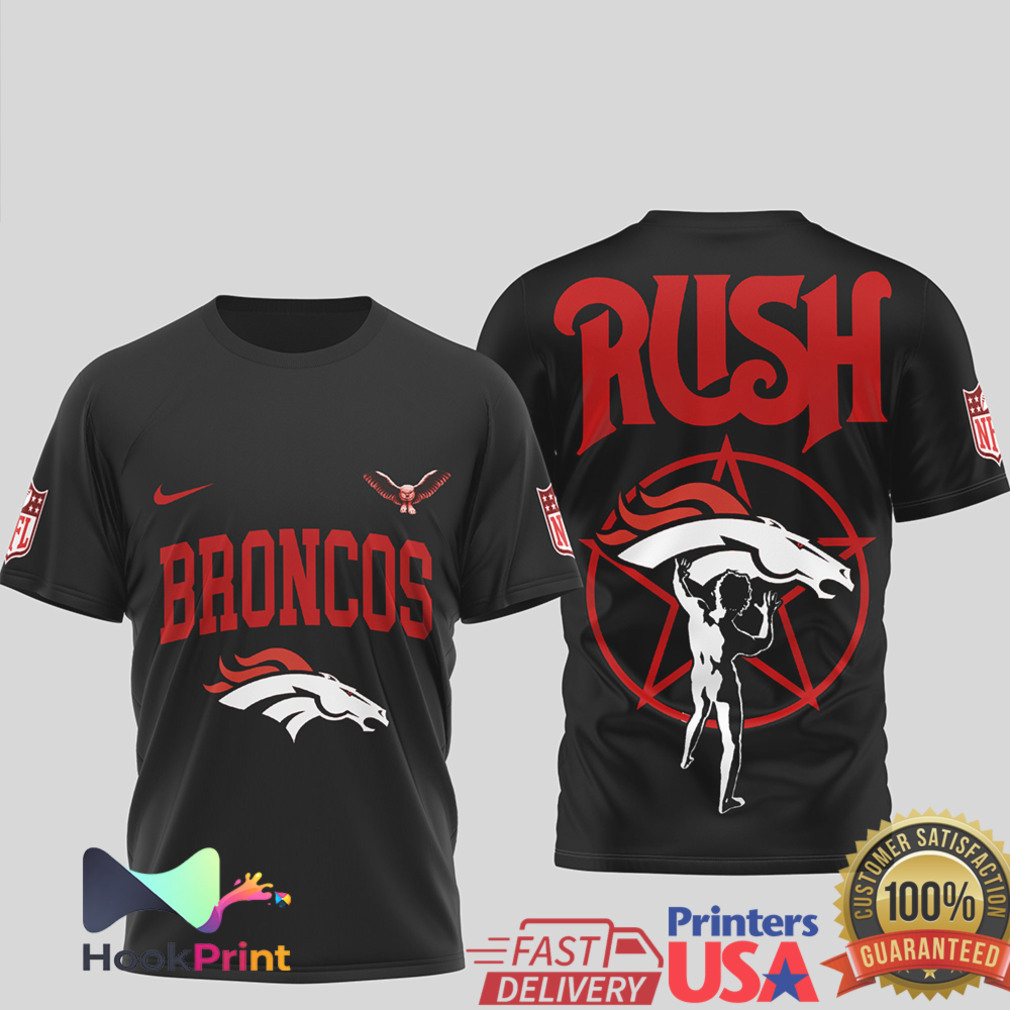 ▶️ About Rush Band x Denver Broncos Starman Mashup Black T Shirt – 3D T-Shirt