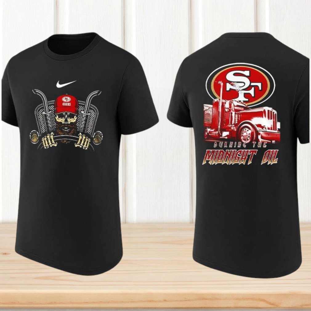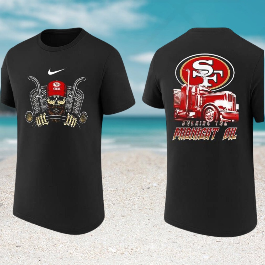 ()San Francisco 49ers Burning The Midnight Oil Trucker Skull Football T Shirt, V-neck, Sweater Hoodie and Long Sleeve tee
