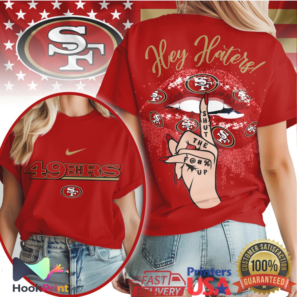 ▶️ About San Francisco 49ers Hey Haters Red Glitter Lips Graphic T Shirt – 3D T-Shirt
