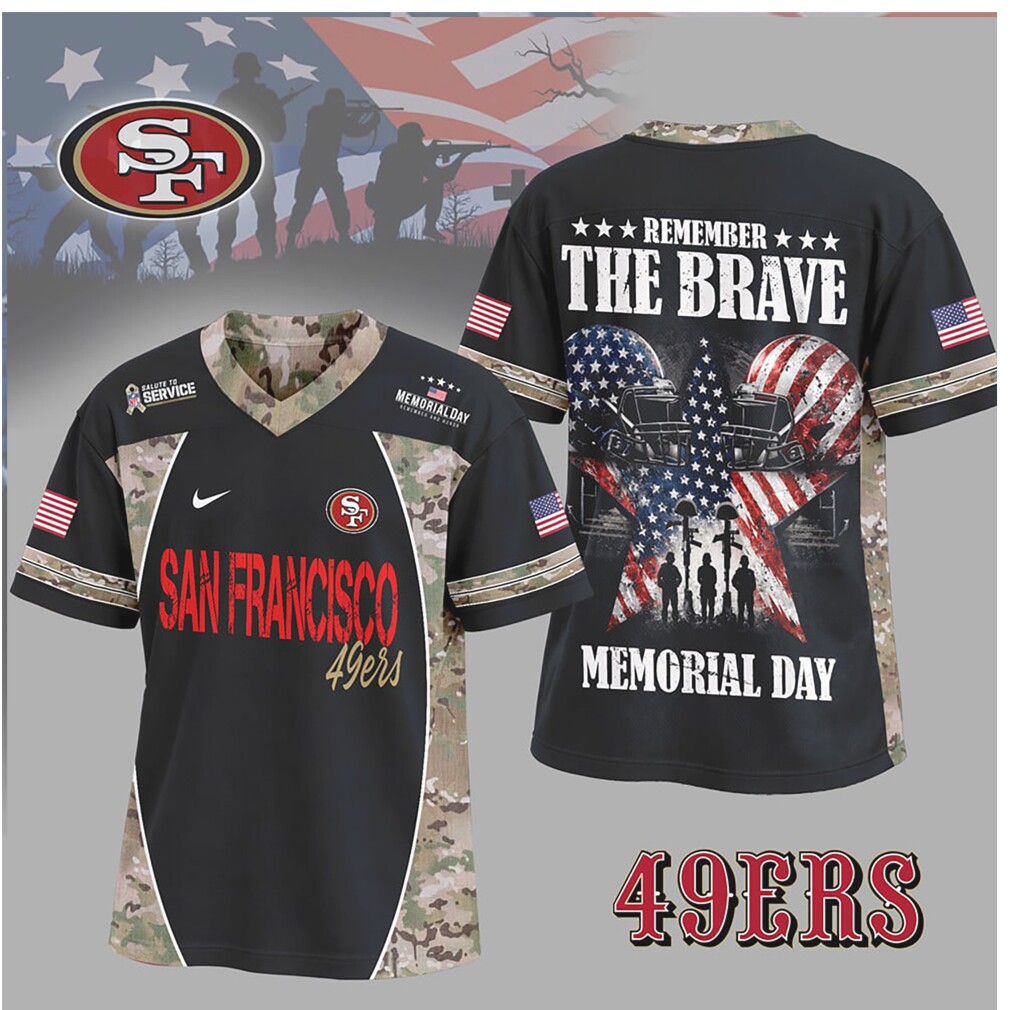 ▶️ About San Francisco 49ers Memorial Day Salute to Service Camo Military Jersey – 3D T-Shirt