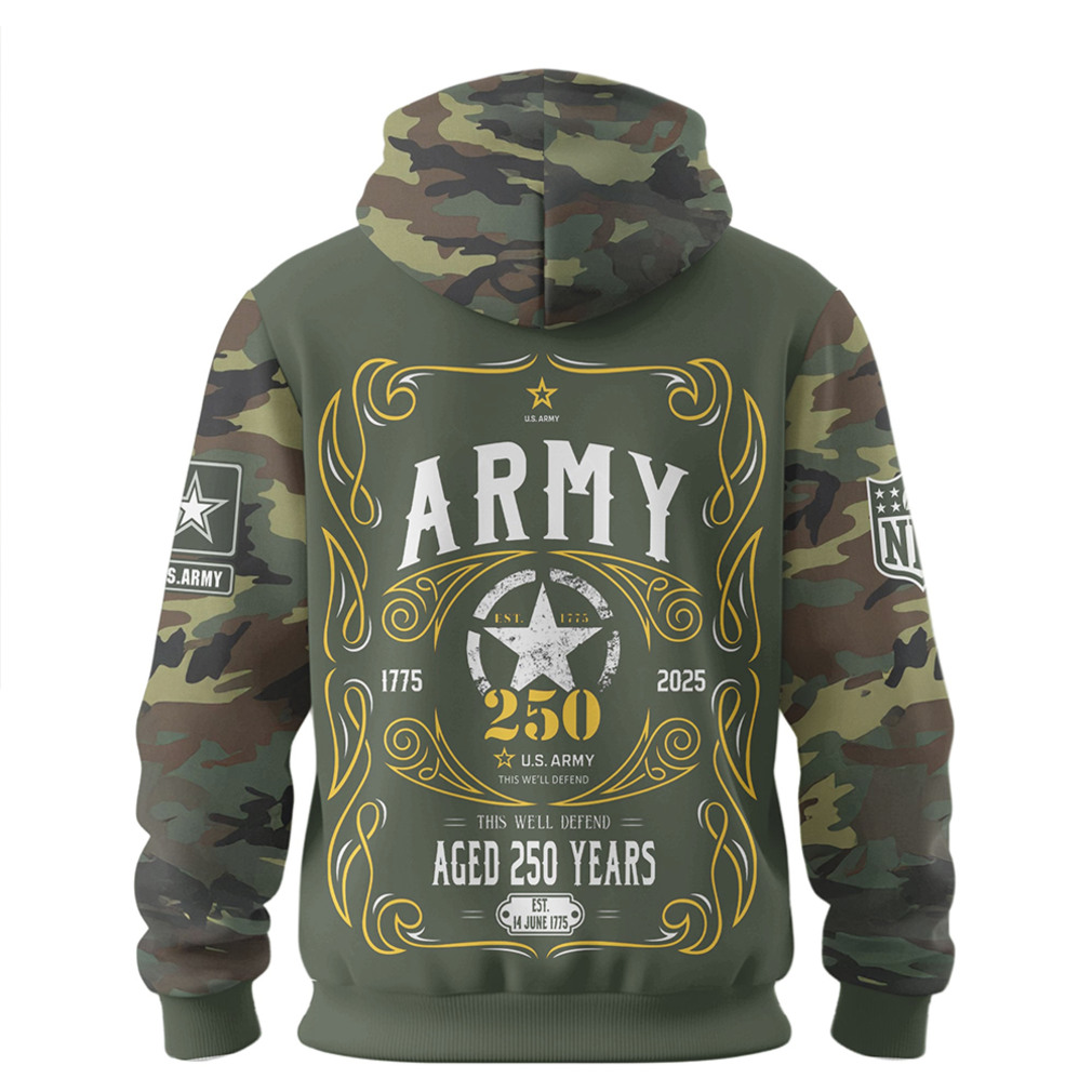 Honor 250 years of American military service alongside San Francisco 49ers fandom in this striking US Army anniversary camo tee. The camouflage design in scarlet and gold team accents pays tribute to the soldiers who have defended freedom for two and a half centuries, while the NFL team branding makes it a standout piece for fans who are proud of both their team and their country’s military heritage. A meaningful gift for veterans, active duty service members, and any San Francisco 49ers fan who stands at attention.