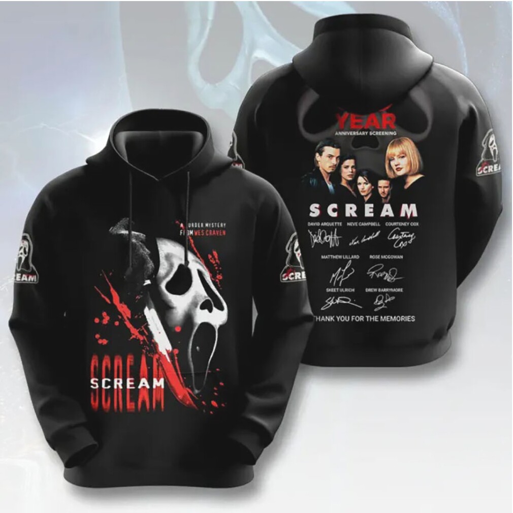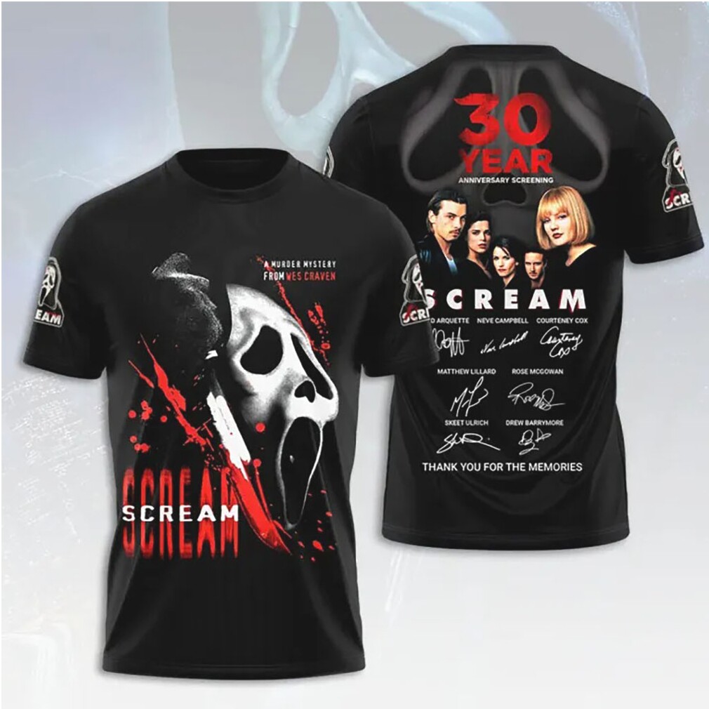 ▶️ About Scream 30 Year Anniversary Screening Wes Craven Cast Signed Ghostface Shirt – 3D T-Shirt