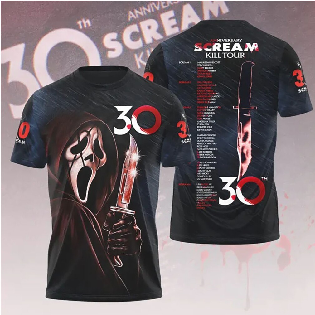 ▶️ About Scream 30th Anniversary Kill Tour Ghostface With Knife Artwork T Shirt – 3D T-Shirt