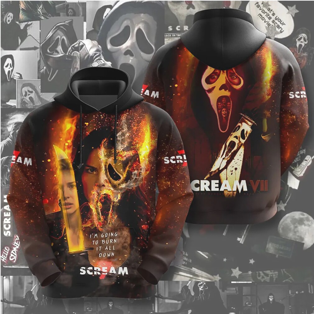 ▶️ About Scream 7 Burning Ghostface Mask Horror Vintage 90s Slasher Movie Hoodie – 3D T-Shirt