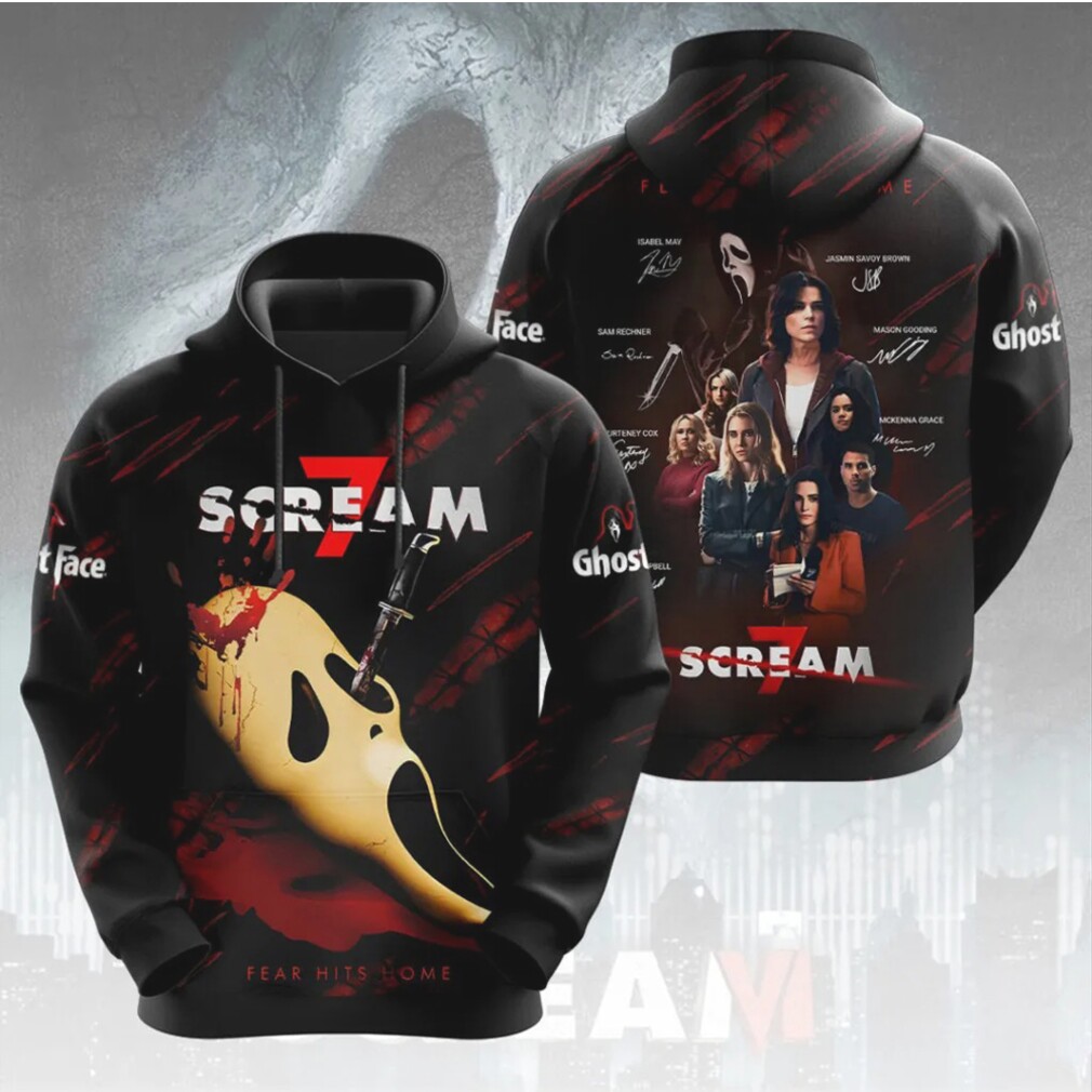 ▶️ About Scream 7 Fear Hits Home Cast Graphic Slasher Film Fan Tribute Apparel Hoodie – 3D T-Shirt