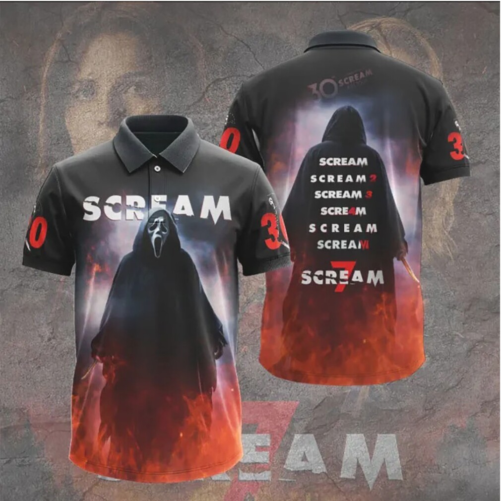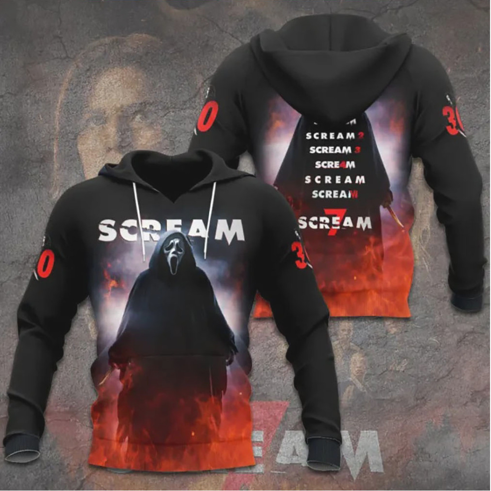 ▶️ About Scream 7 Ghostface Silhouette Fire Ashes 30th Anniversary T Shirt – 3D T-Shirt