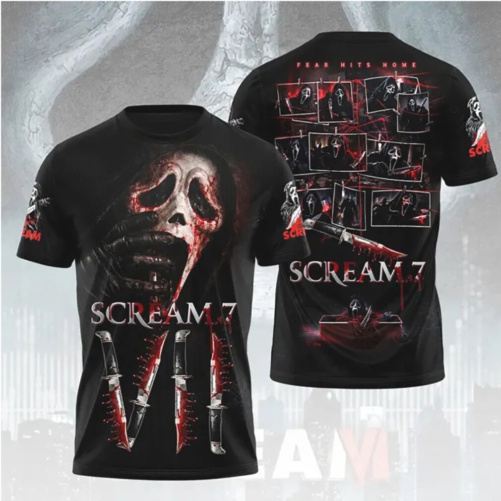 ▶️ About Scream VII Fear Hits Home Bloody Ghostface Collage Horror Fan T Shirt – 3D T-Shirt