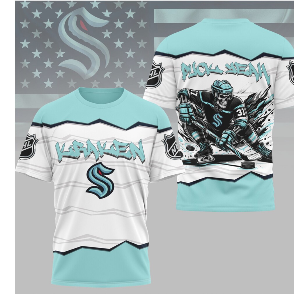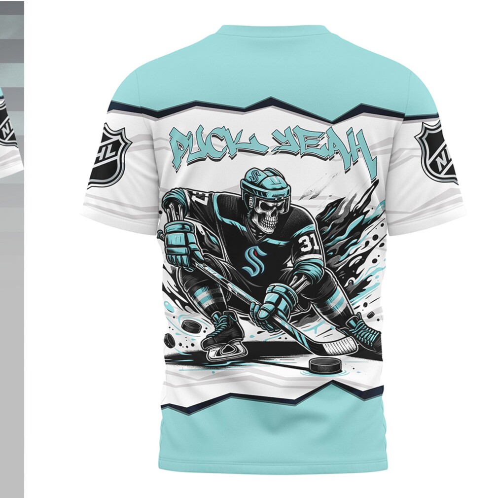 ▶️ About Seattle Kraken Puck Yeah Skeleton Teal 90s Hockey Apparel Shirt – 3D T-Shirt