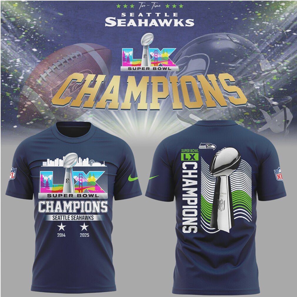 ()Seattle Seahawks 2 Time Super Bowl Champions Trophy History Navy Blue Fan Hoodie, V-neck, Sweater Hoodie and Long Sleeve tee