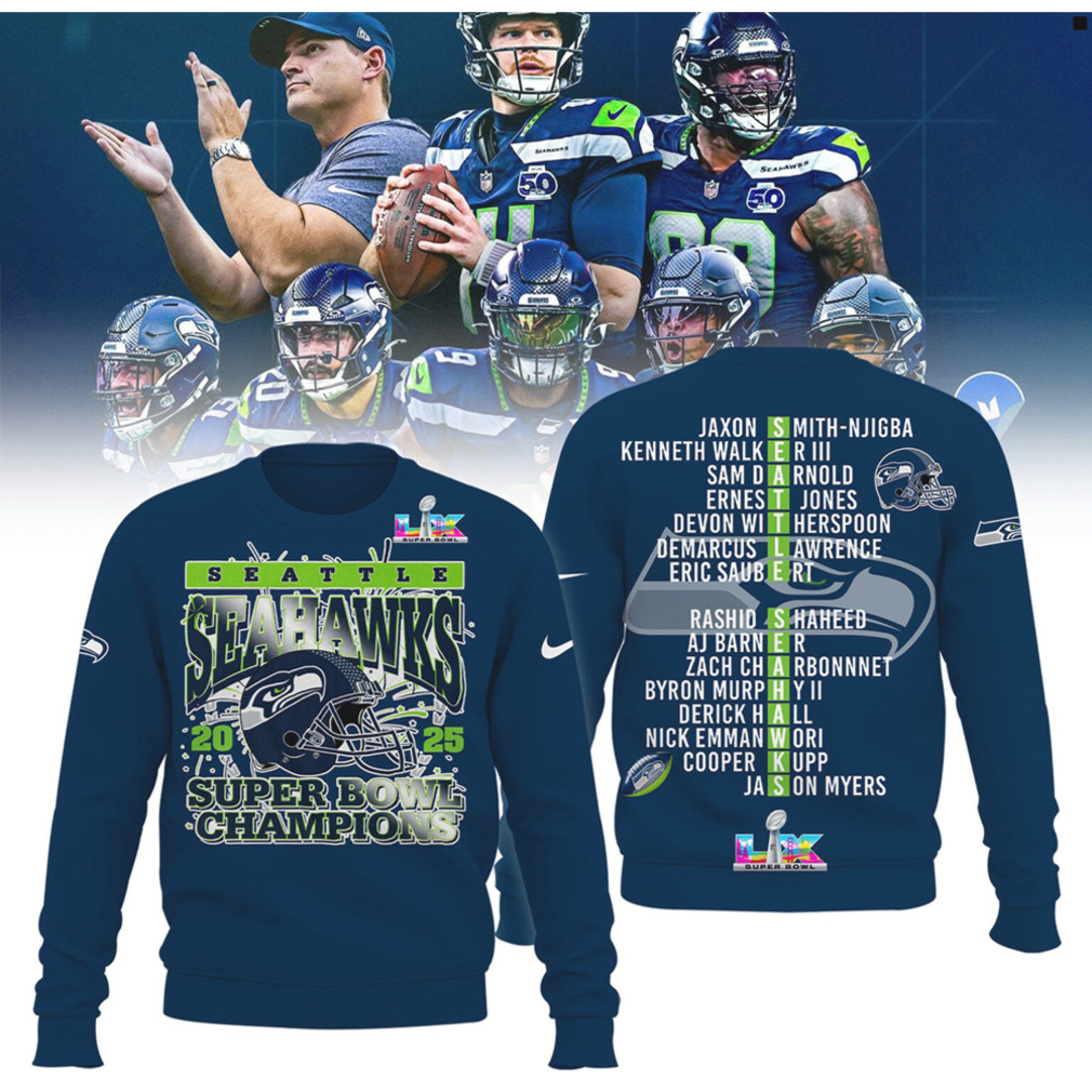 ▶️ About Seattle Seahawks 2025 Super Bowl Champions Roster List Graphic T Shirt – 3D T-Shirt