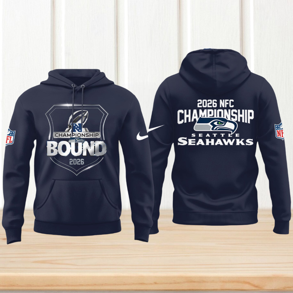 ▶️ About Seattle Seahawks 2026 NFC Championship Bound Performance Navy Pullover Fan Hoodie – 3D T-Shirt
