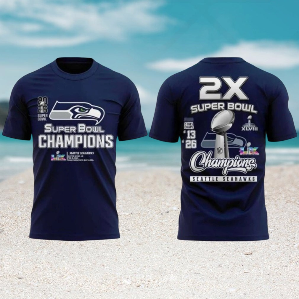()Seattle Seahawks 2X Super Bowl Champions Navy Blue Commemorative T Shirt, V-neck, Sweater Hoodie and Long Sleeve tee