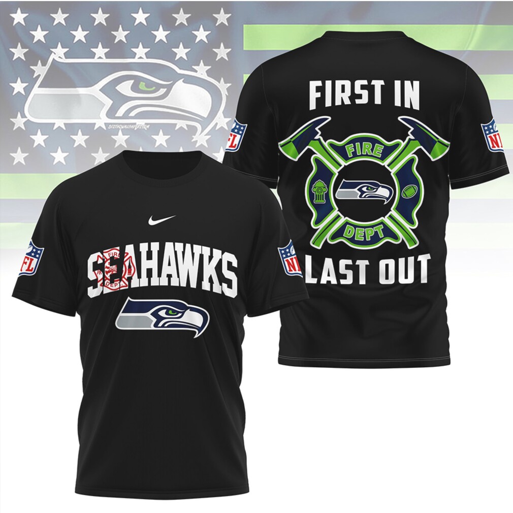 ()▶️ About Seattle Seahawks Fire Dept First In Last Out Thin Red Line Fan Shirt – 3D T-Shirt
