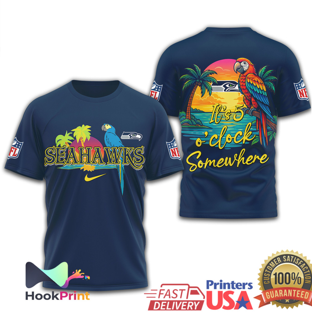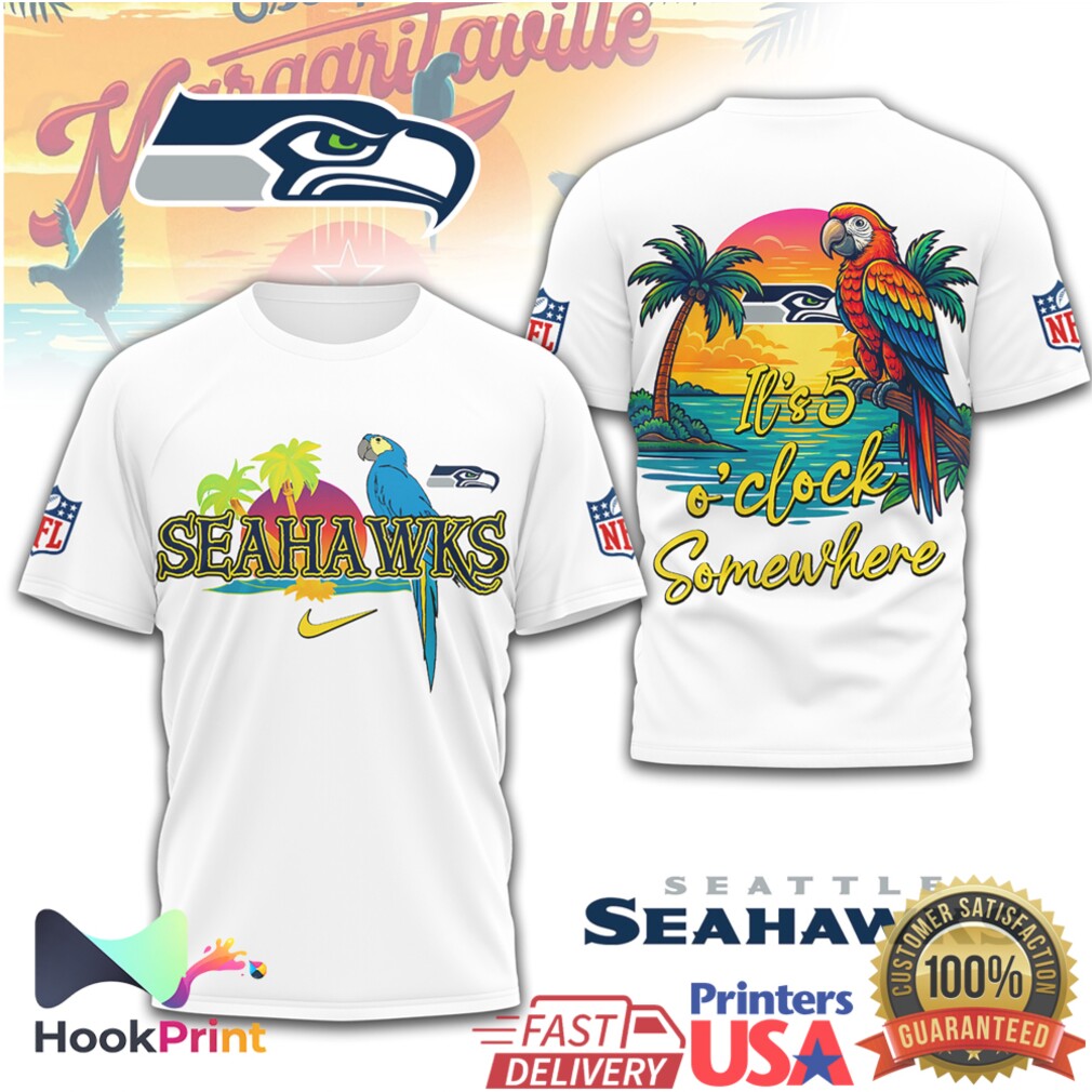 ▶️ About Seattle Seahawks Margaritaville Parrot Beach NFL Graphic T Shirt – 3D T-Shirt