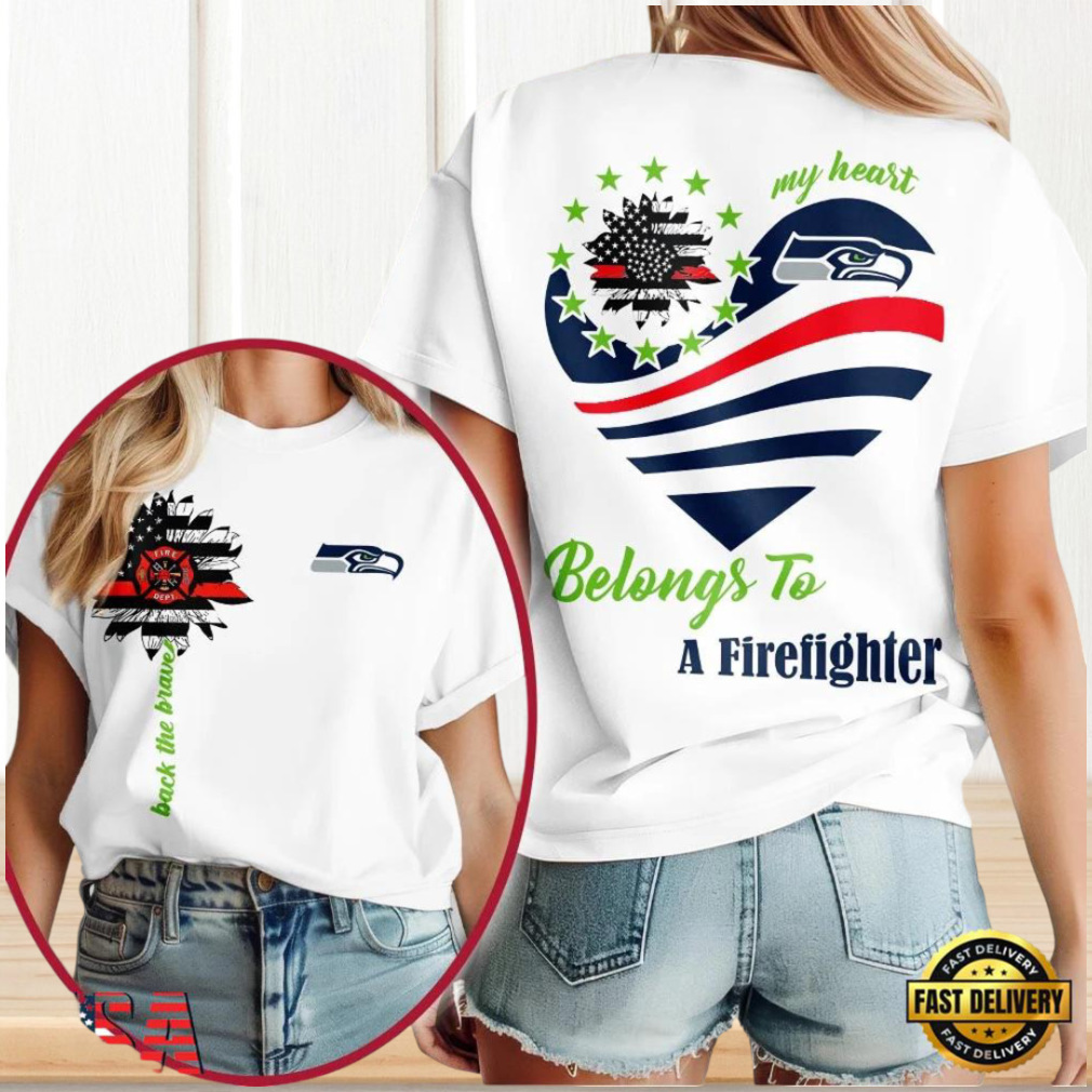()Seattle Seahawks My Heart Belongs To A Firefighter Back The Brave T Shirt, V-neck, Sweater Hoodie and Long Sleeve tee