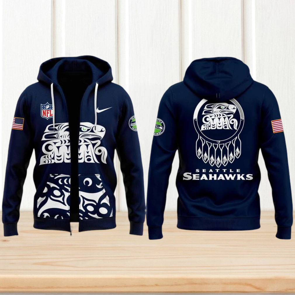 ▶️ About Seattle Seahawks Native American Style Zip Up Tribal NFL Hoodie – 3D T-Shirt
