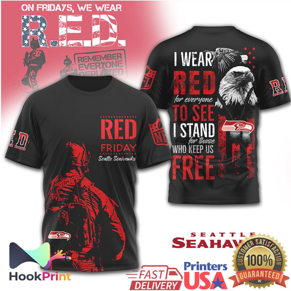 ()Seattle Seahawks RED Friday Military Support Eagle 3D NFL T Shirt, V-neck, Sweater Hoodie and Long Sleeve tee