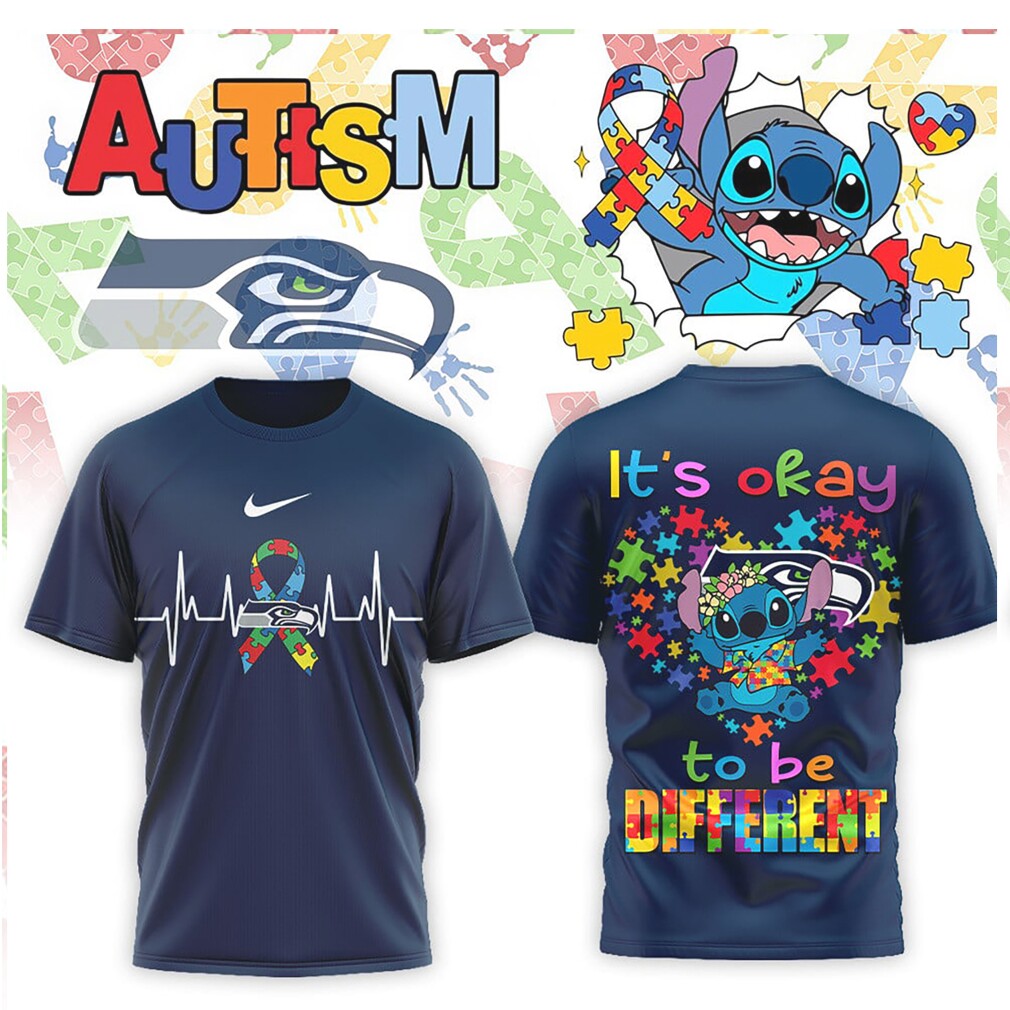 ▶️ About Seattle Seahawks Stitch Autism Awareness Heartbeat It's Okay To Be Different Shirt – 3D T-Shirt