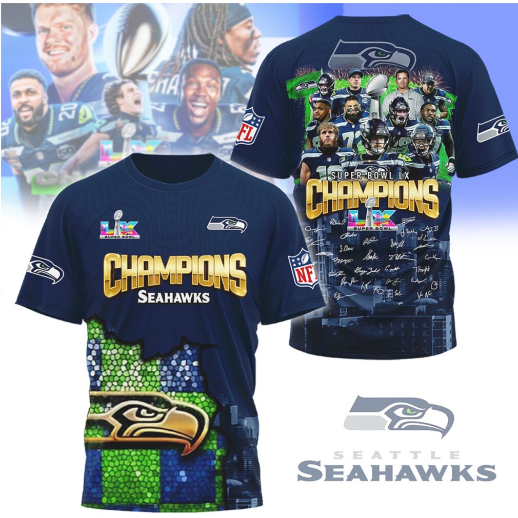 ▶️ About Seattle Seahawks Super Bowl LX Champions 2026 Graphic T Shirt – 3D T-Shirt