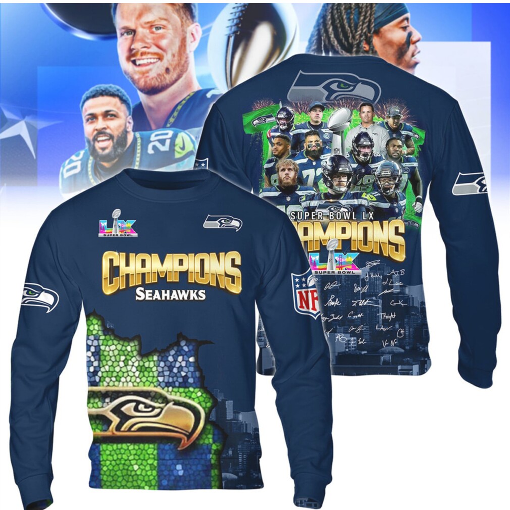 ()Seattle Seahawks Super Bowl LX Champions 2026 Graphic T Shirt, V-neck, Sweater Hoodie and Long Sleeve tee