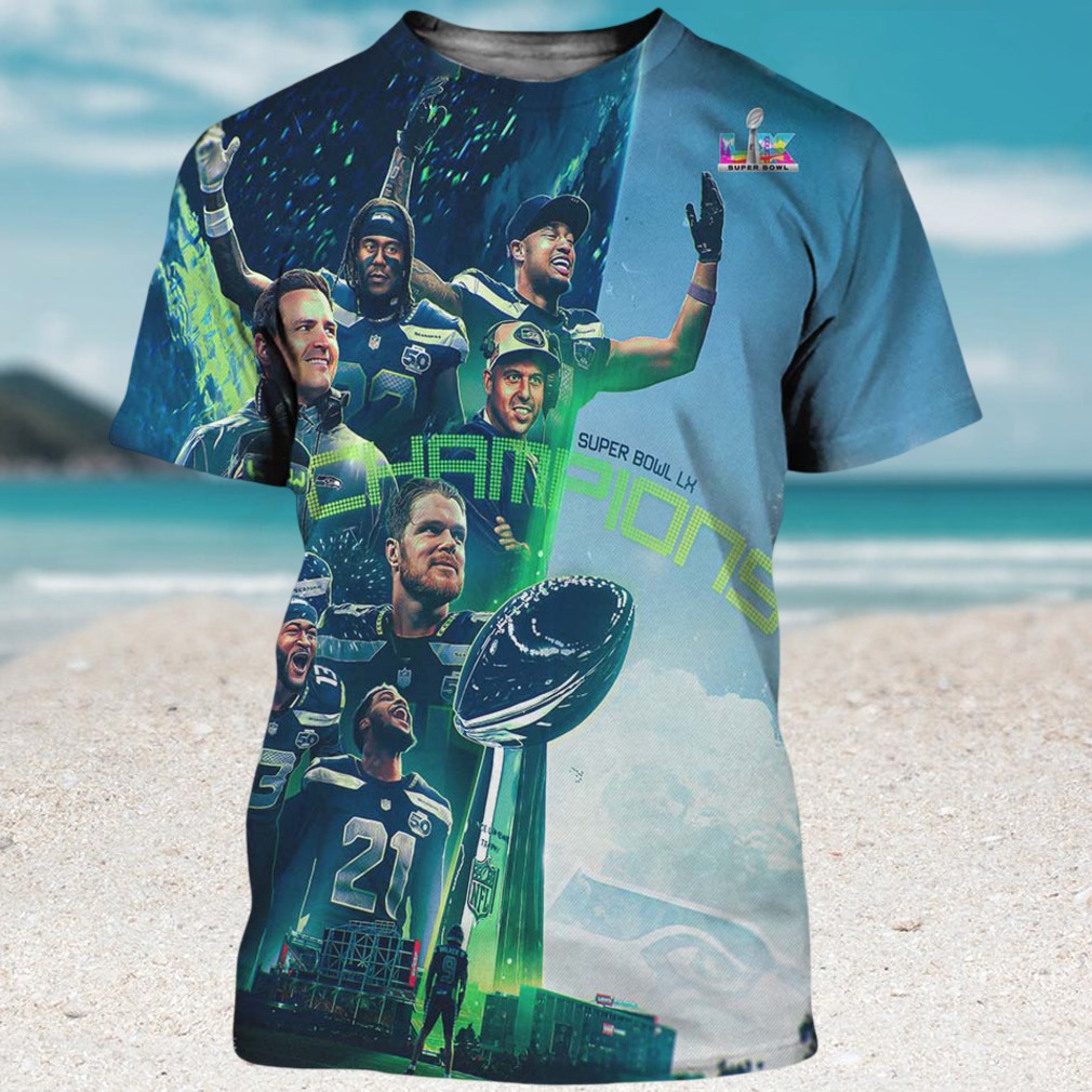 ▶️ About Seattle Seahawks Super Bowl LX Champions Blue Fade Team Victory Shirt – 3D T-Shirt