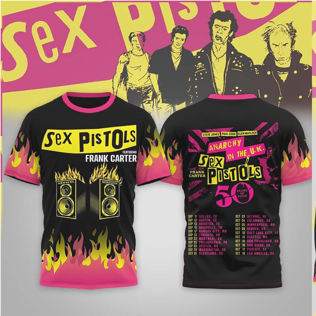 ▶️ About Sex Pistols ft. Frank Carter Anarchy In The UK 50 Years Of Punk Tour T Shirt – 3D T-Shirt