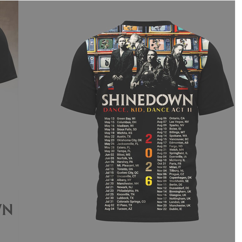 ▶️ About Shinedown Dance Kid Dance Act II 2026 World Tour T Shirt – 3D T-Shirt