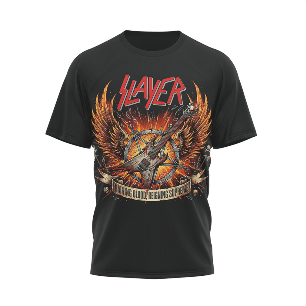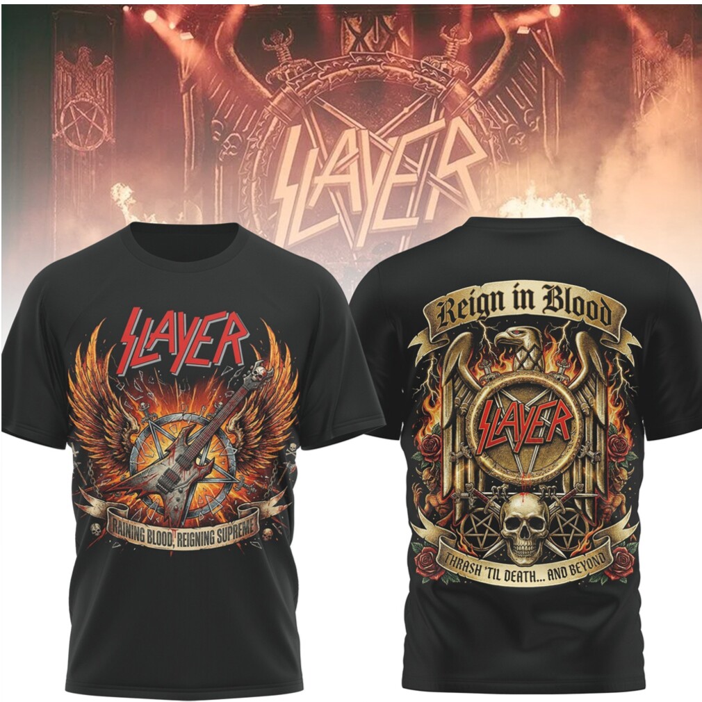 ▶️ About Slayer Reign In Blood Reigning Supreme Thrash Metal Graphic T Shirt – 3D T-Shirt