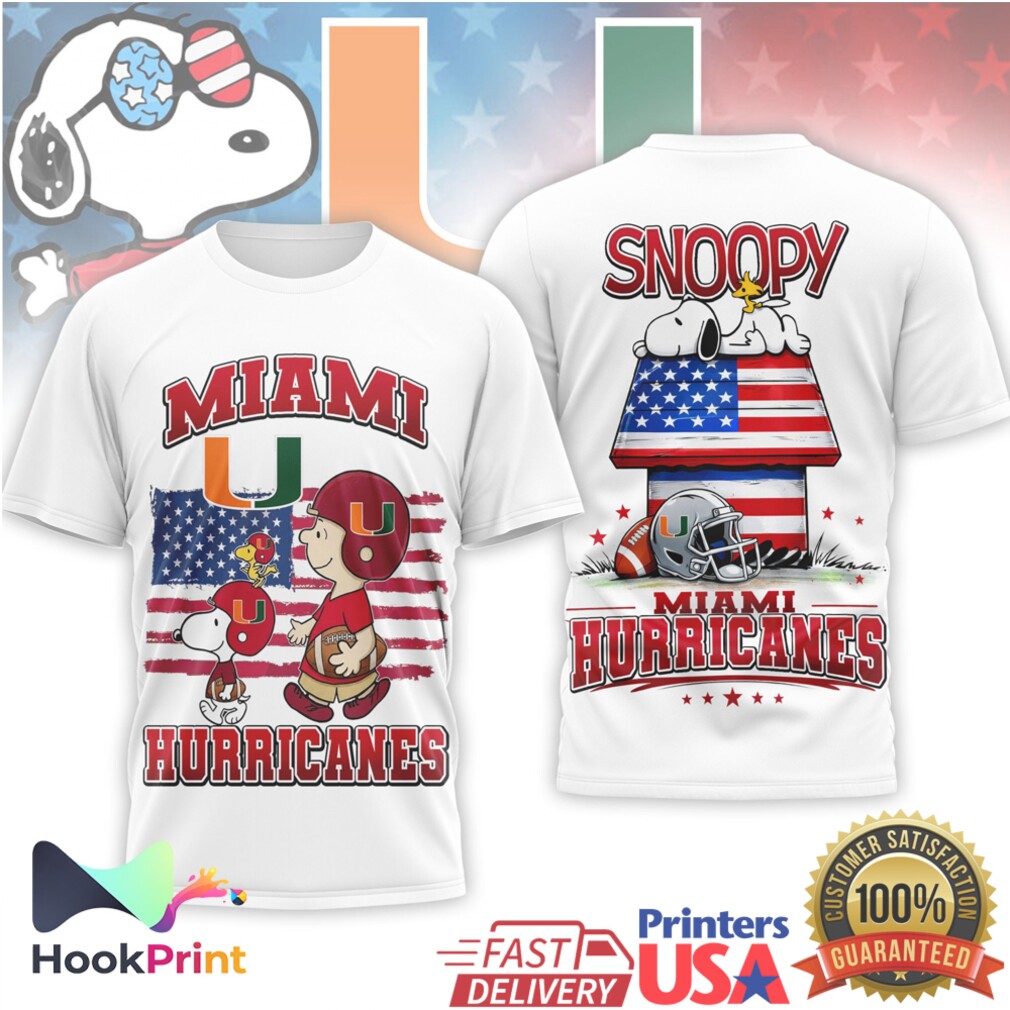 ▶️ About Snoopy and Charlie Brown Miami Hurricanes American Flag Football T Shirt – 3D T-Shirt