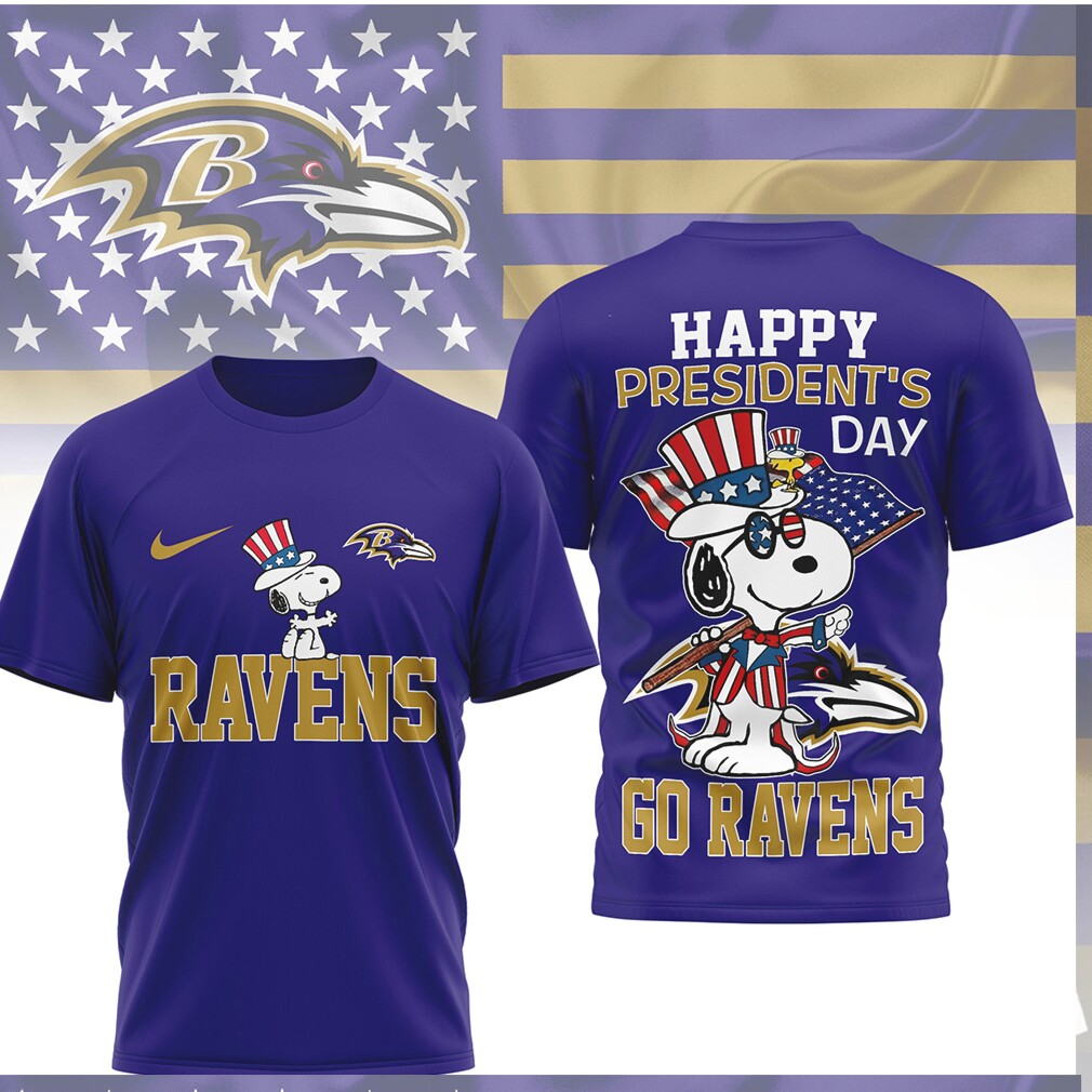 ▶️ About Snoopy Baltimore Ravens Happy President's Day Patriotic Football Shirt – 3D T-Shirt