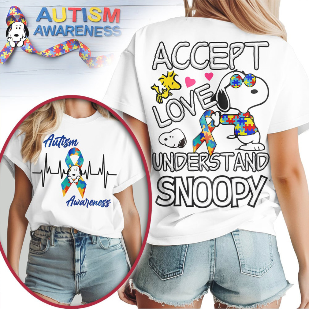 ()Snoopy Peanuts Autism Awareness Accept Love Understand Puzzle Piece Heart Tie Dye Shirt, V-neck, Sweater Hoodie and Long Sleeve tee