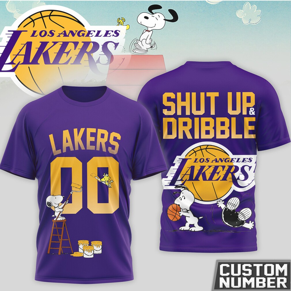 ▶️ About Snoopy x Los Angeles Lakers Custom Number Shut Up and Dribble Lakers Fan T Shirt – 3D T-Shirt