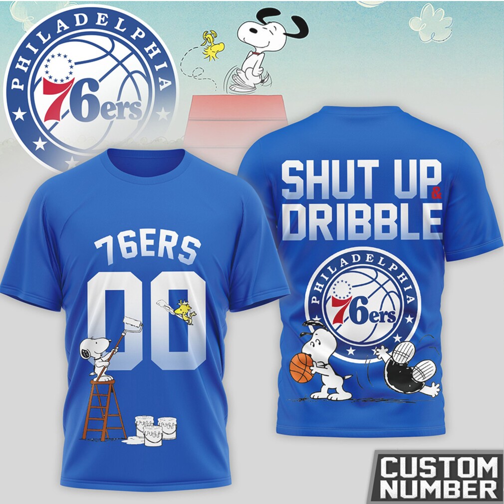 ▶️ About Snoopy x Philadelphia 76ers Custom Number Shut Up and Dribble Sixers Fan T Shirt – 3D T-Shirt