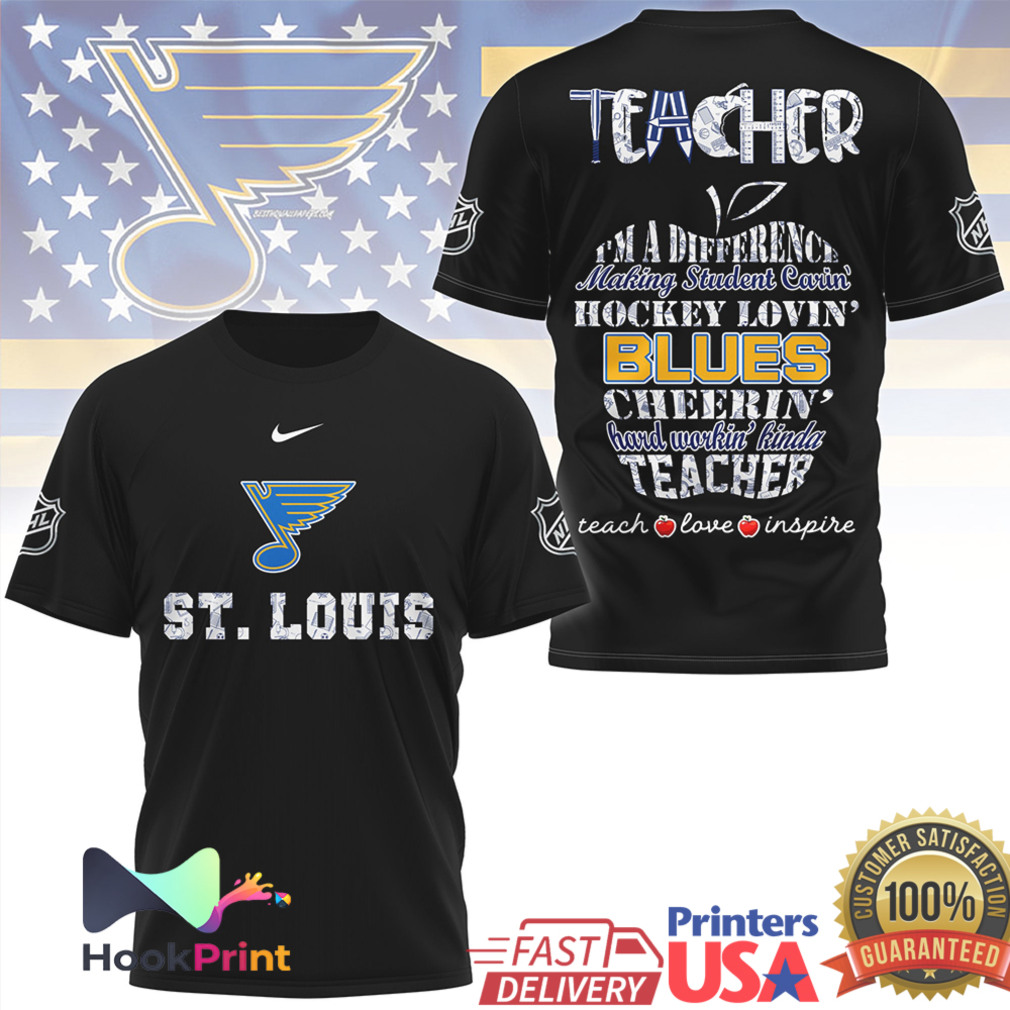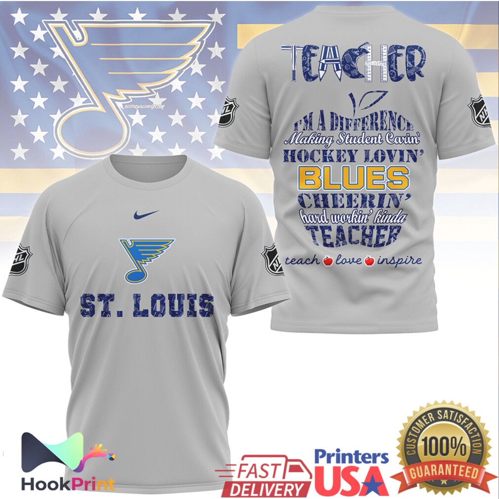 ▶️ About St. Louis Blues Hockey Loving Teacher Cheerin' Hard Workin' T Shirt – 3D T-Shirt